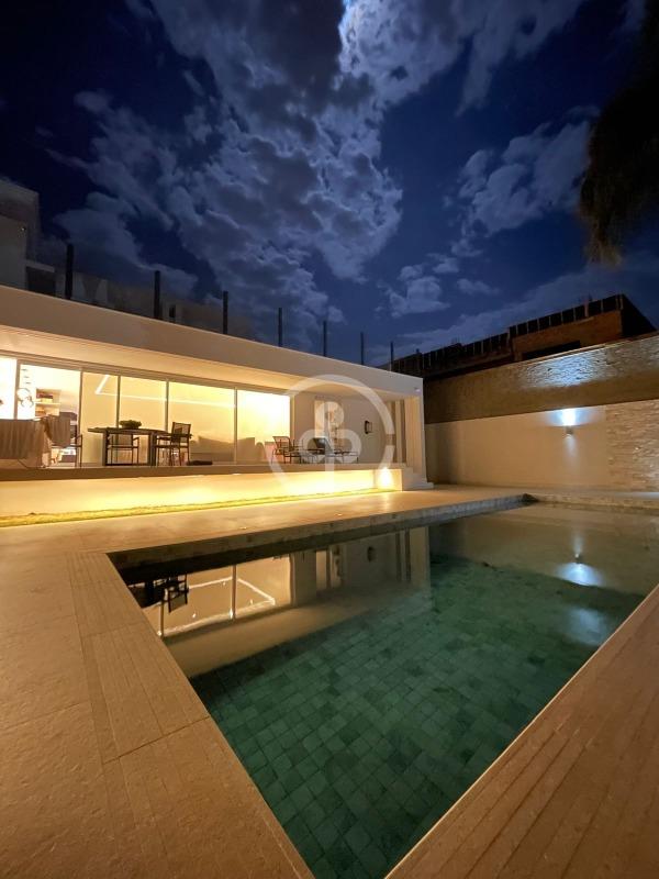 A casa conta ainda com um escritório, terraço, lavanderia equipada com depósito e BWC, além de uma cozinha moderna integrada à copa.