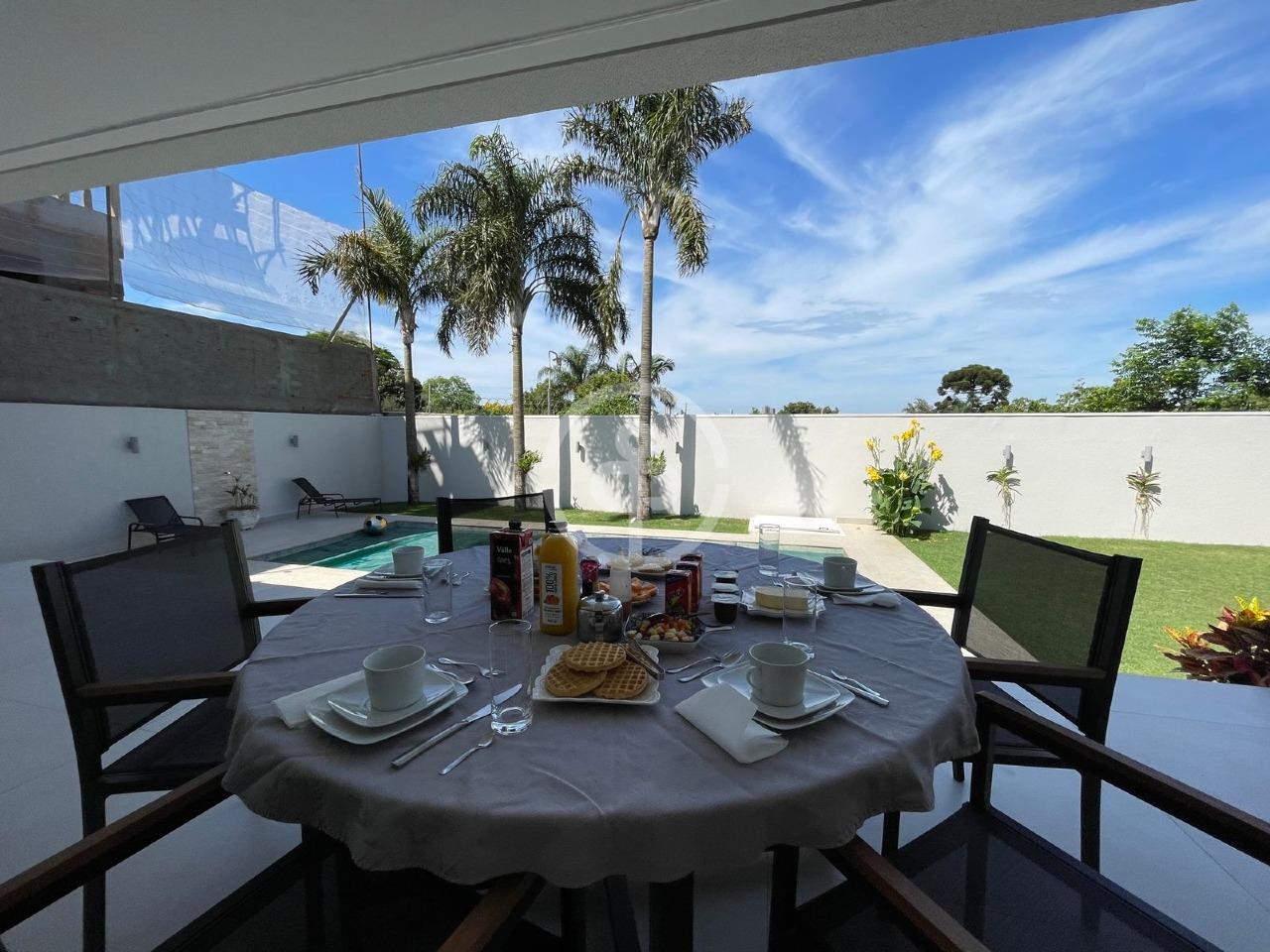 Com uma piscina privativa e quatro suítes, sendo duas com closets, o imóvel garante espaço e privacidade para toda a família.