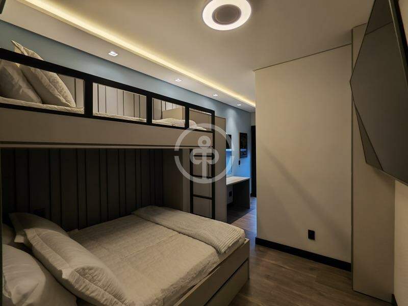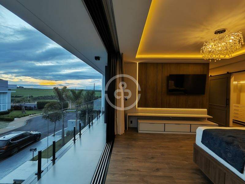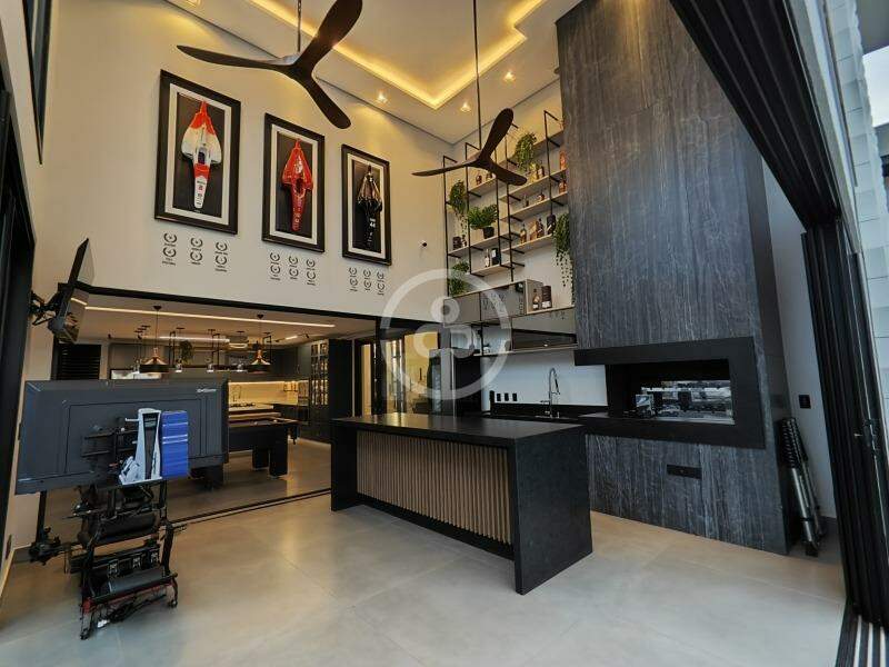 Tecnologia de ponta com sistema elétrico e irrigação automatizados, carregador para carro elétrico, casa inteligente com Alexa em diversos ambientes e internet de alta velocidade com 2 Unifi. Destaque para o cockpit StockCar com PS5, lareira, piscina com aquecimento solar, iluminação em lustres de cristal e garagem para até 6 veículos.
