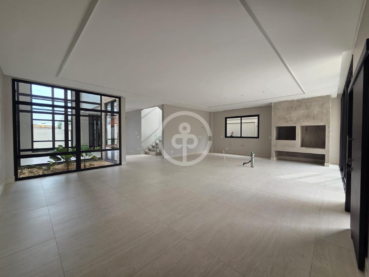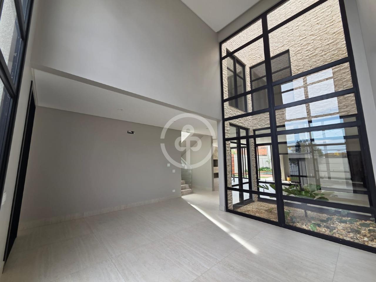 Sala de estar e TV com pé direito duplo e jardim de inverno;