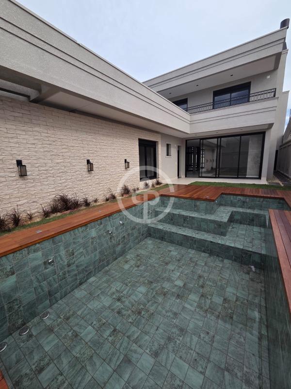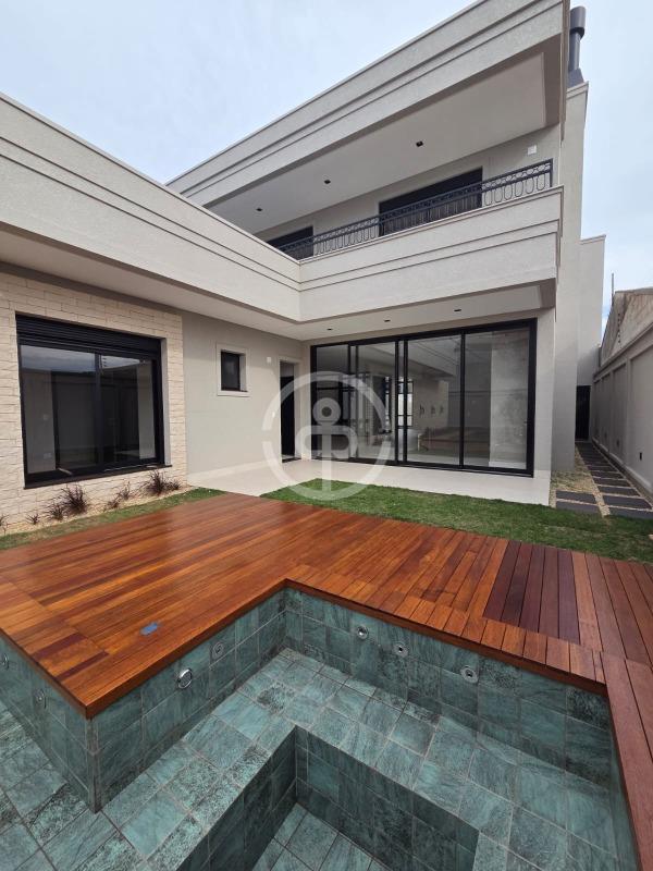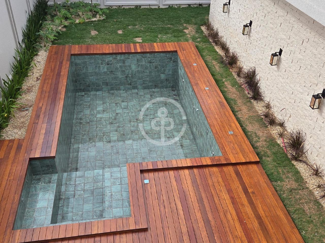 Piscina com deck de madeira;