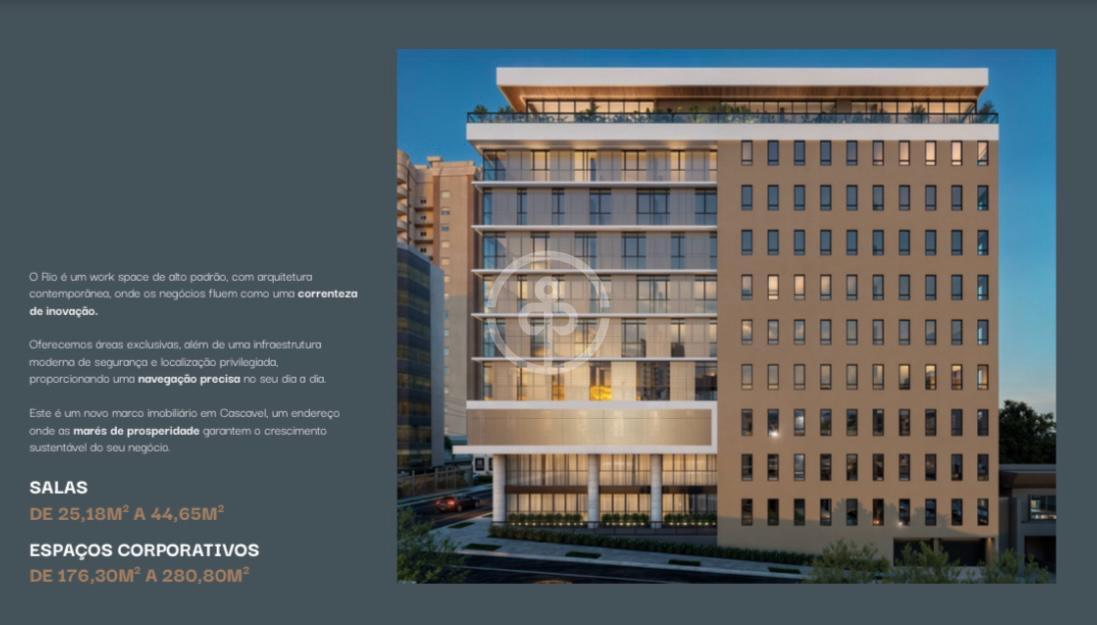 Salas comerciais de 25,18m2 a 46,65m2 privativos;